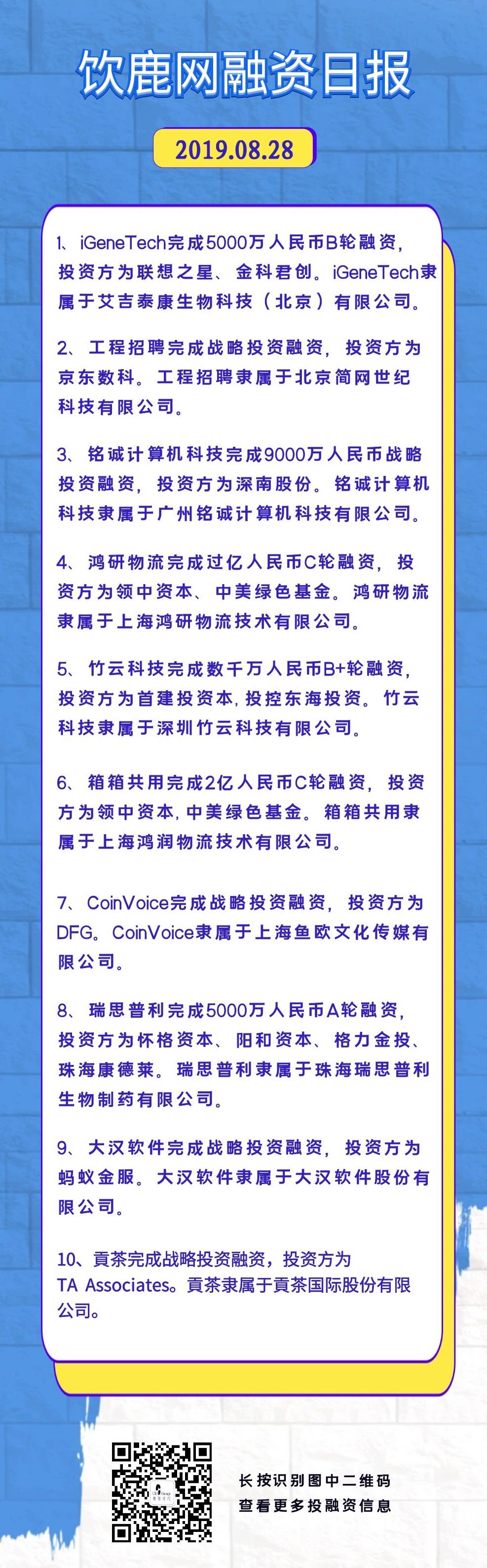 饮鹿网新兴产业融资日报(20190828)